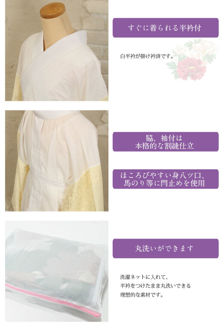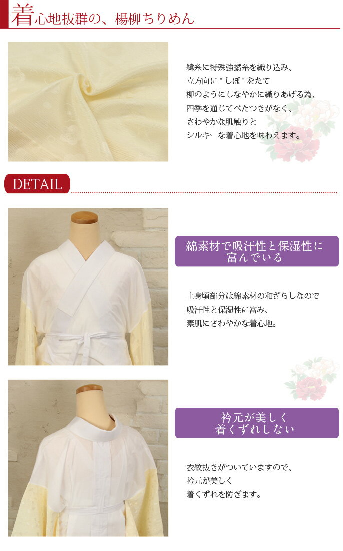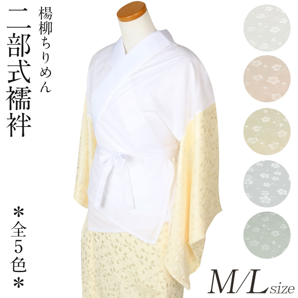 長襦袢 <楊柳ちりめん> 洗える二部式襦袢(半衿・衣紋抜き付)M・Lサイズ【選べる5カラー】 綿×ポリエステル素材二部式長襦袢 あす楽【着物 襦袢 きもの専科 アイデア商品】