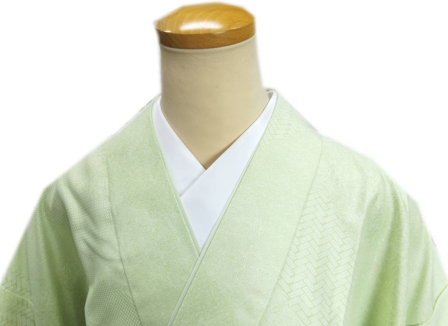 簡単洗える袷二部式着物江戸小紋薄黄緑色地古典柄合わせM・L 普段着&ユニフォームに 女性用レディース