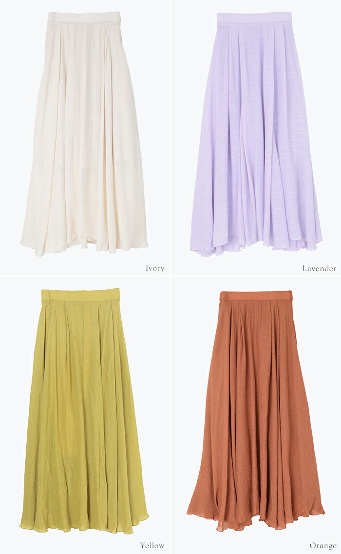 商品詳細 商品説明 柔らかく軽やかな風合いの素材が涼しげで、シーズンムード満点のマキシスカート。